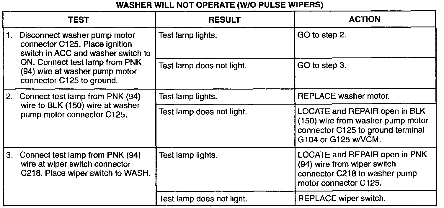 Diagnosis: Washer Will Not Operate (W/O Pulse Wipers):