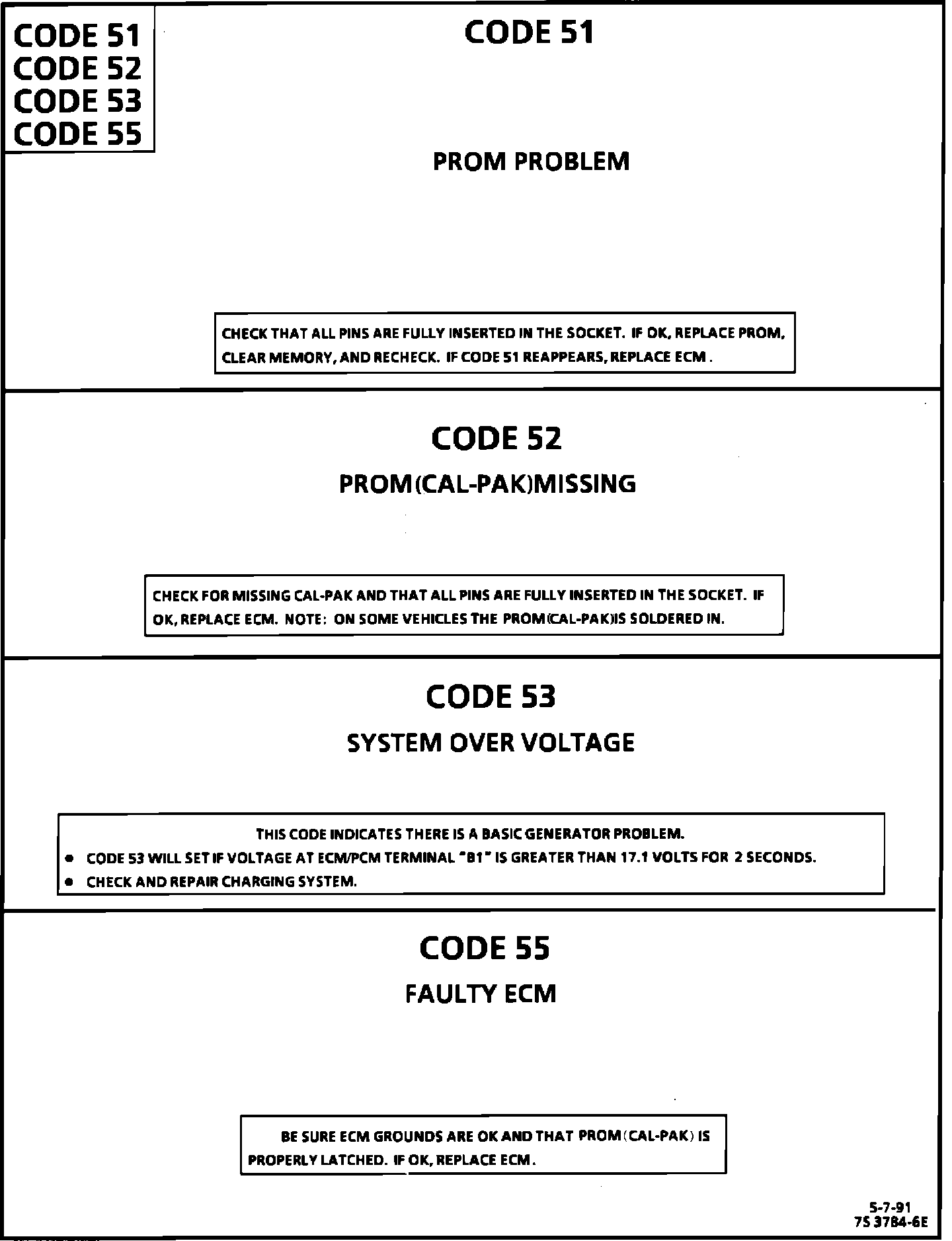 Codes 51 52 53 55: