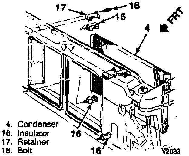 1. Condenser (4). Refer to A/C System Oil Charge Replenishing / "Refrigerant Oil Distribution" if replacing condenser. Service and Repair