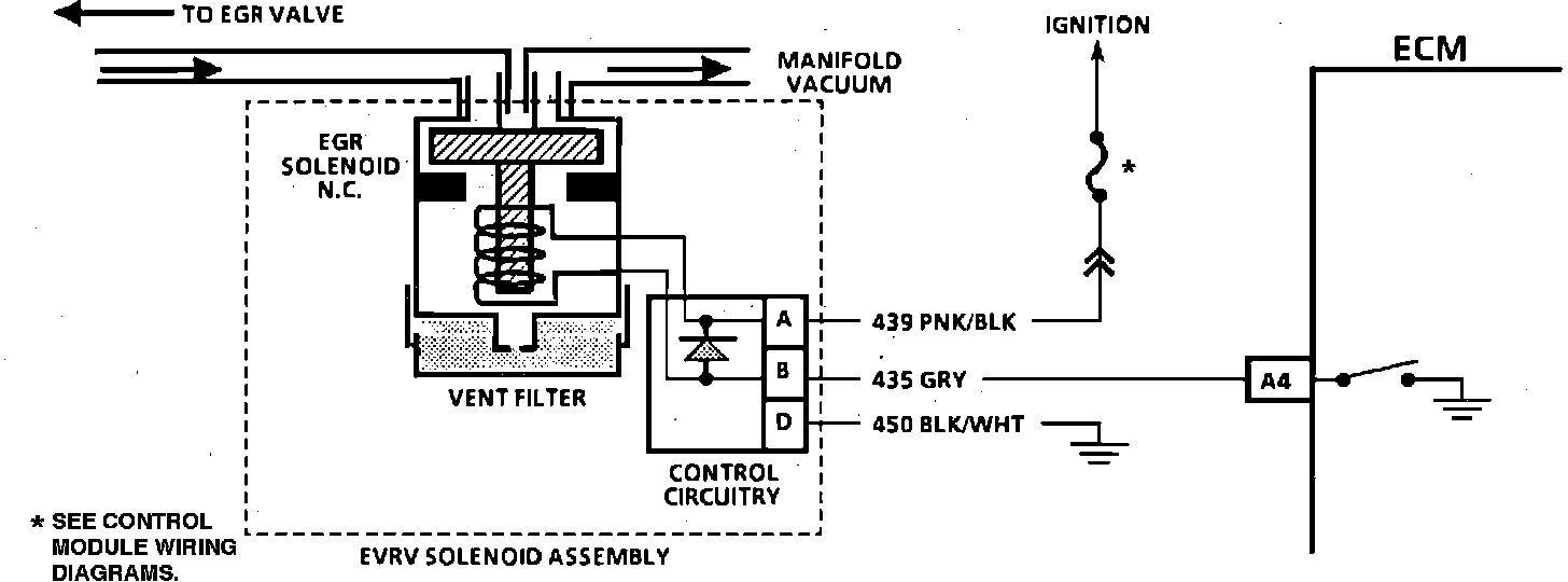 The EGR vacuum control has an EVRV solenoid that uses Pulse Width Modulation (PWM). This means the ECM turns the solenoid ON and OFF many times a second and varies the amount of ON time (pulse width) to vary the amount of EGR.