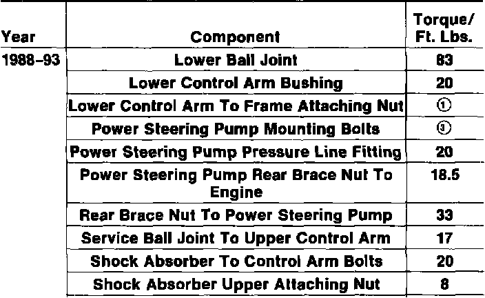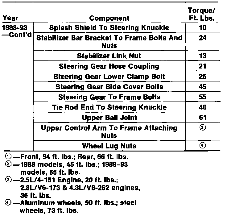 Tightening Specifications 4X2 Models: