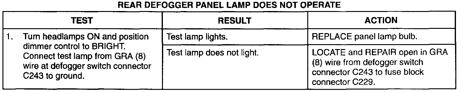 Rear Defogger Panel Does Not Operate