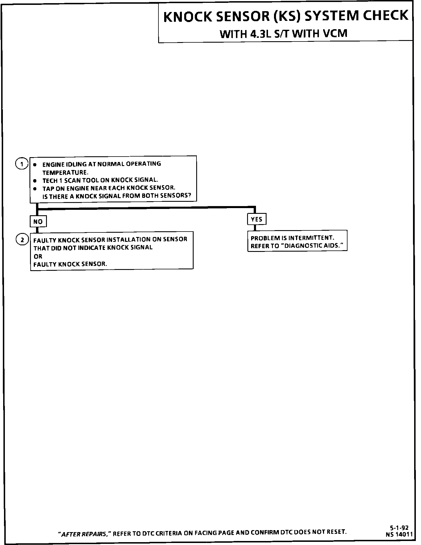 If the KS system checks OK, but detonation is the complaint, refer to 'Detonation/Spark Knock" in "Diagnosis By Sympton". Symptom Related Diagnostic Procedures