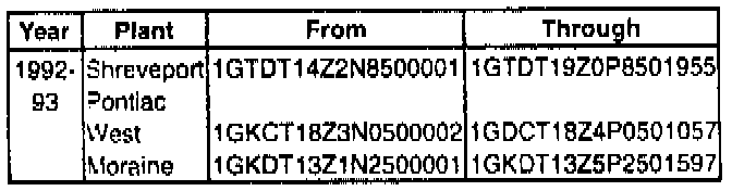 Involved are CERTAIN 1992-93 4-Wheel Drive Jimmy Utility Vehicles and T15 Pickup Trucks with 4.3L engines (RPO's LB4 or L35, VIN Code Z or W) built within the VIN breakpoints shown.