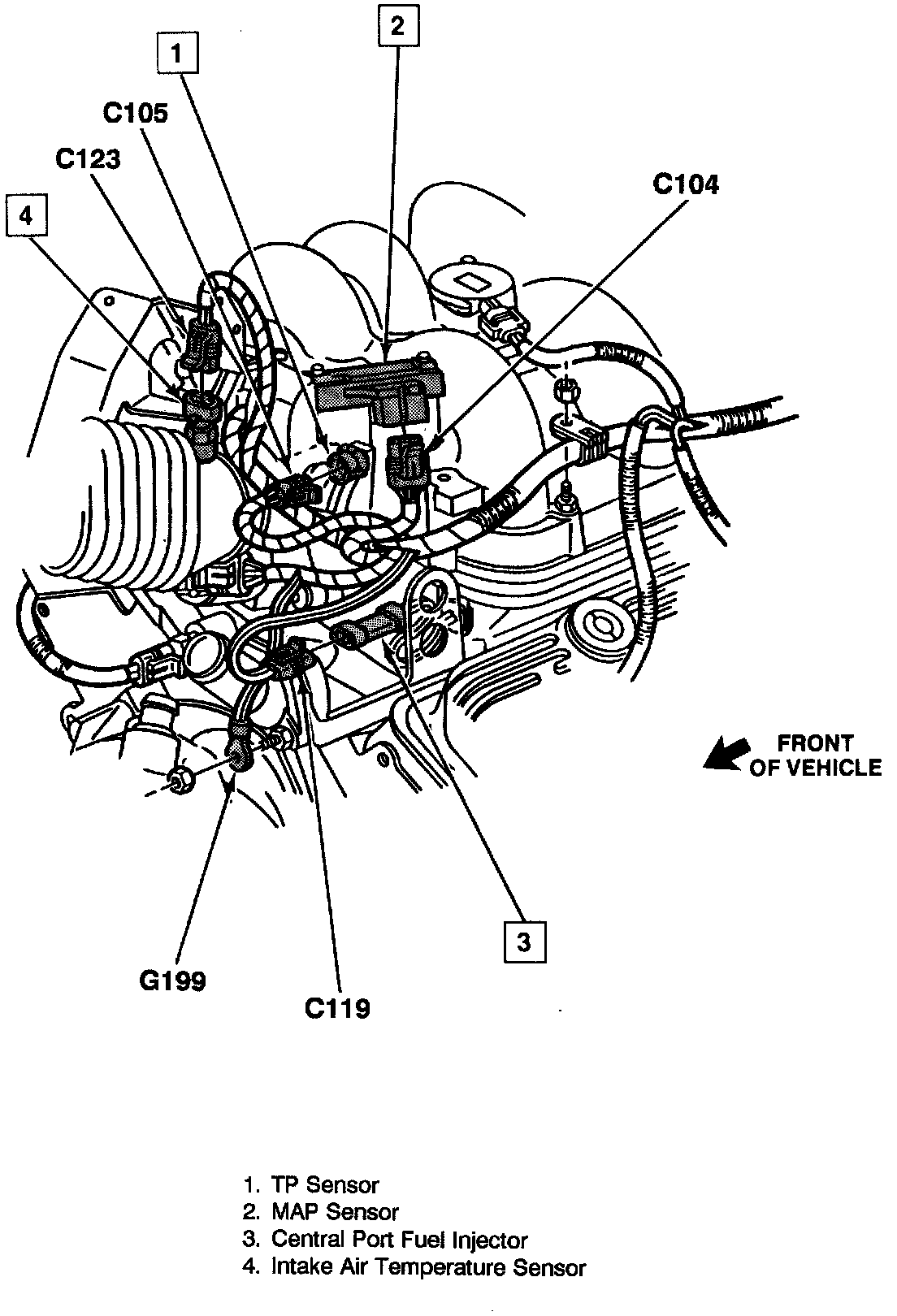 Engine Wiring, Front - 4.3L High Performance Engine (VIN W):