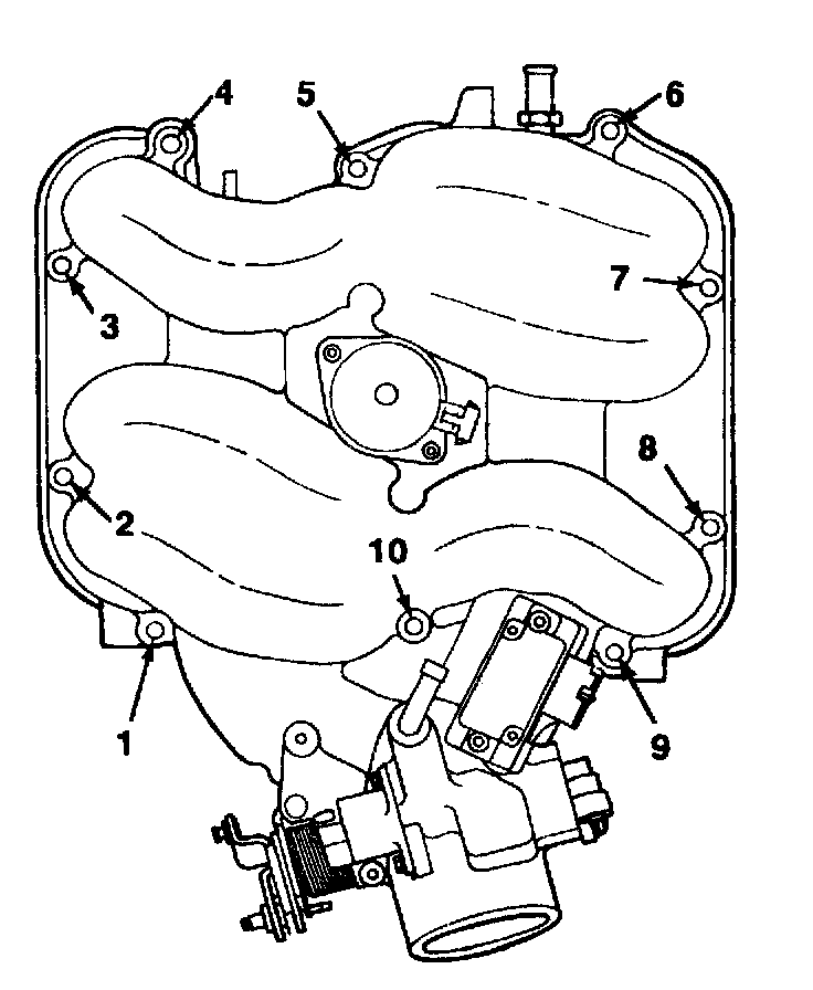 10. Upper intake manifold bolts and studs.