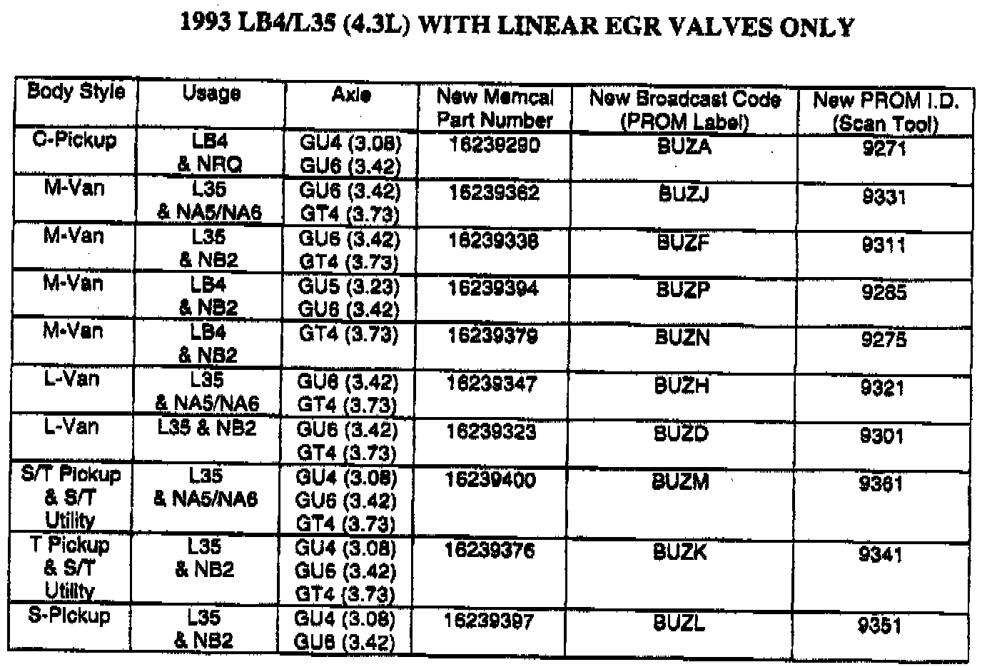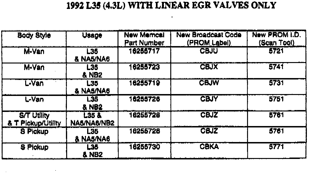 1992-94 S/T, M/L, C TRUCKS EQUIPPED WITH 4.3L ENGINE L35 0R