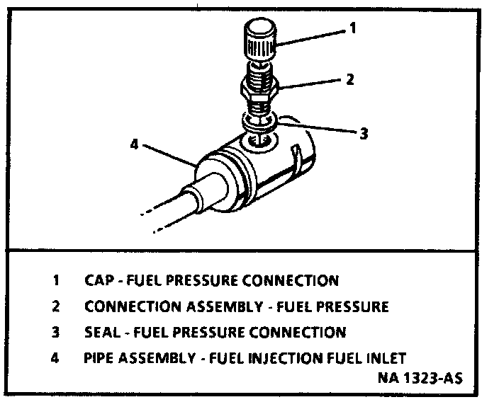- Fuel pressure connection and seal. Discard seal.