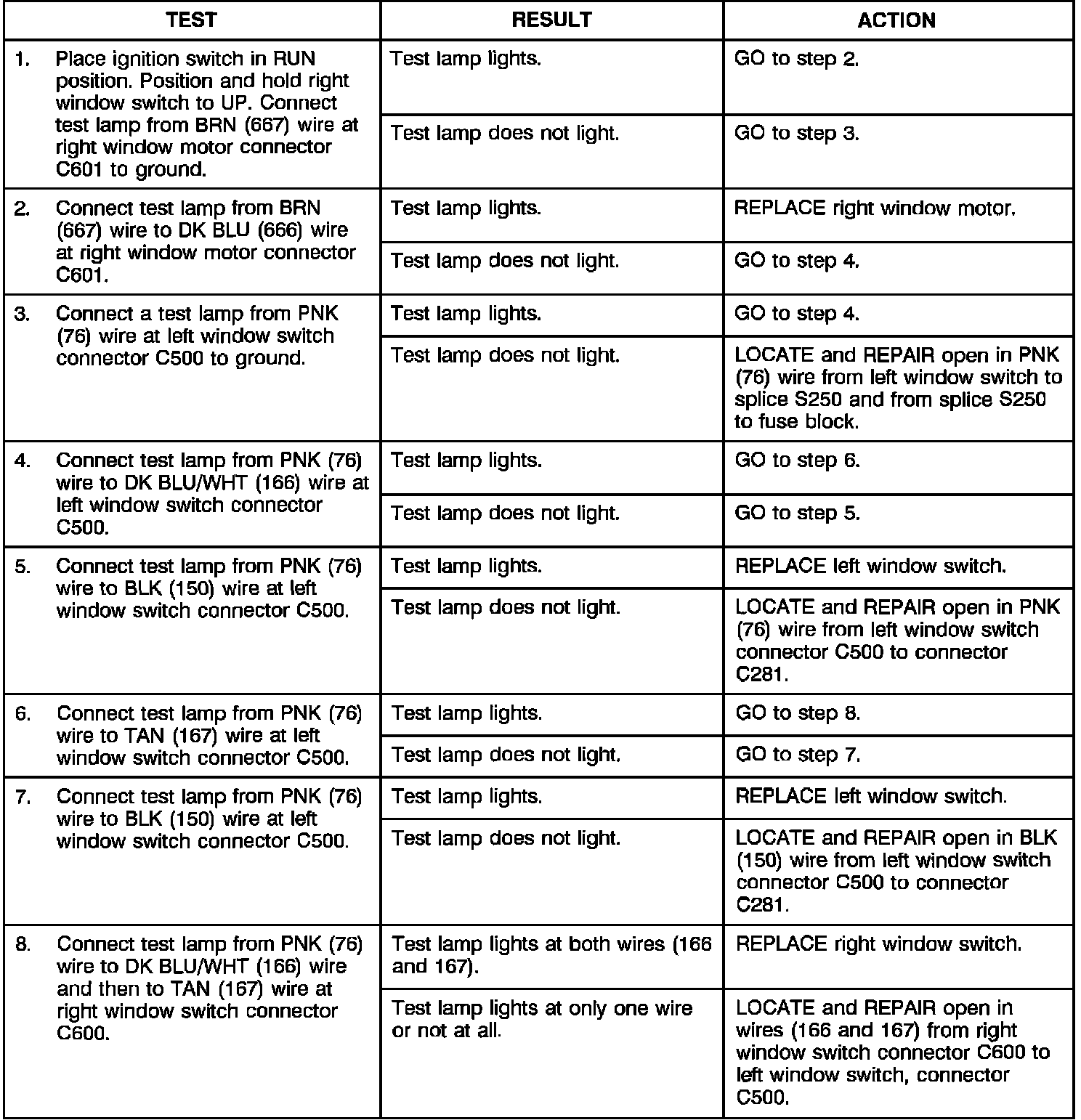RH Power Window Does Not Operate From Either Switch: