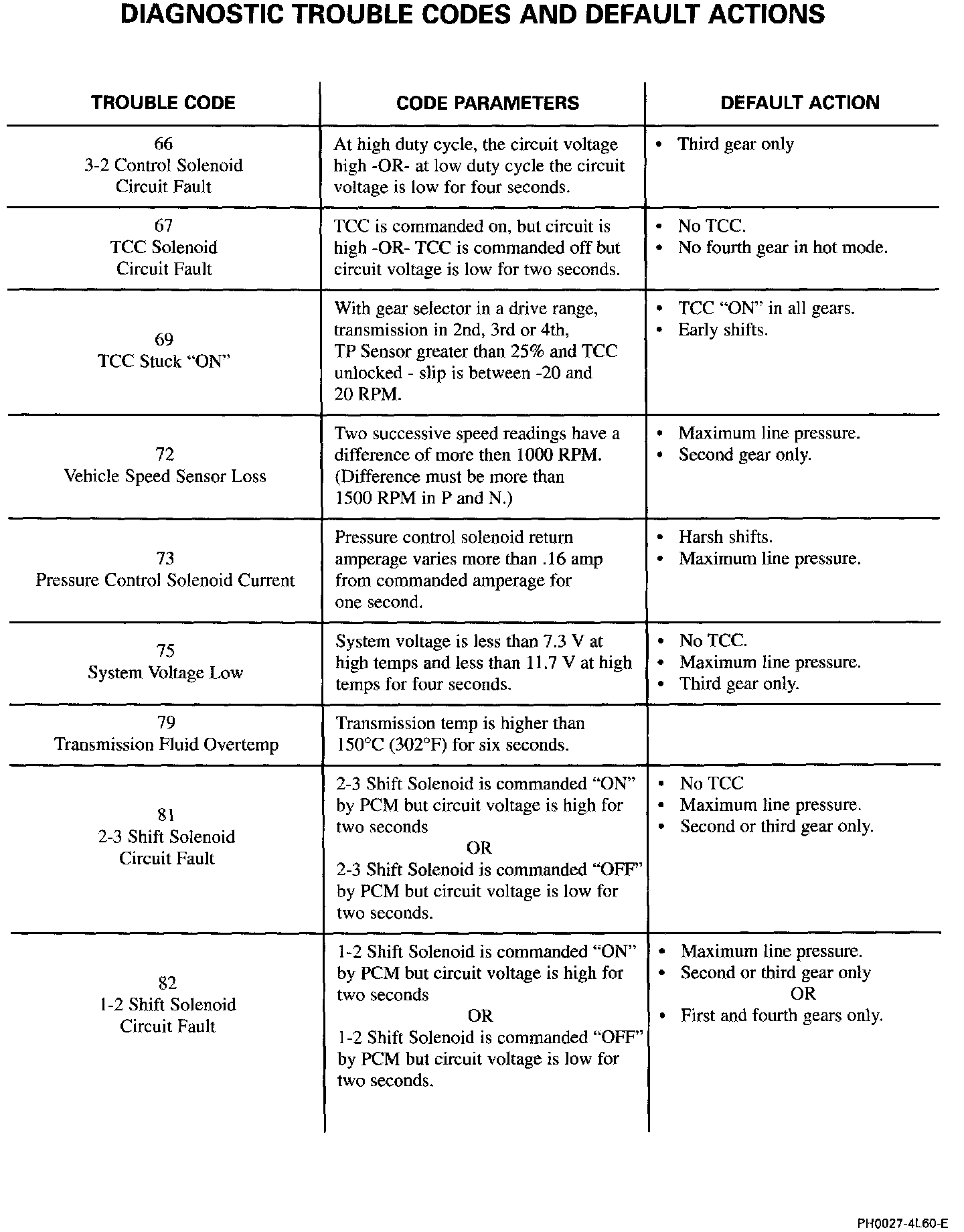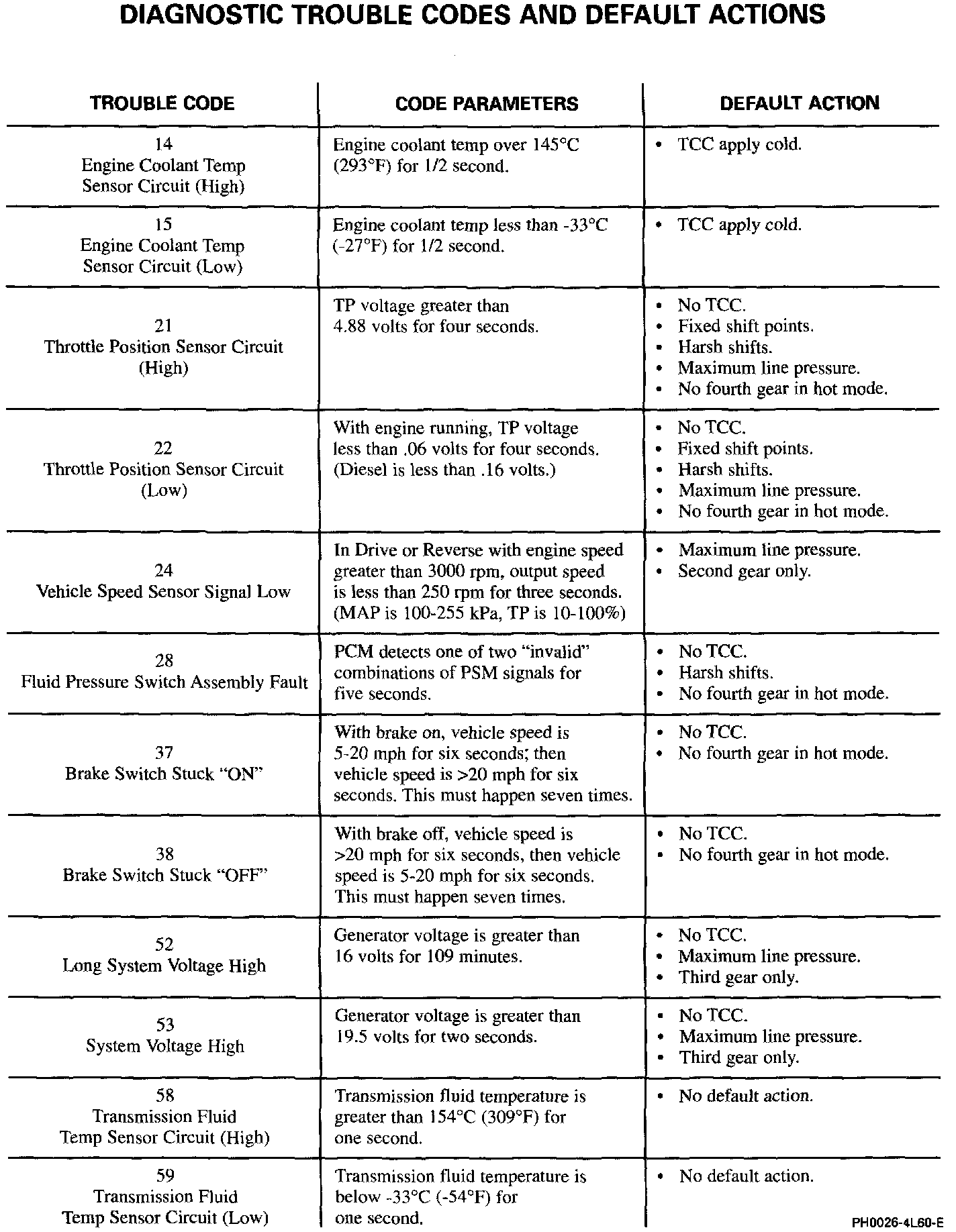 Diagnostic Trouble Codes And Default Actions (1 of 2):