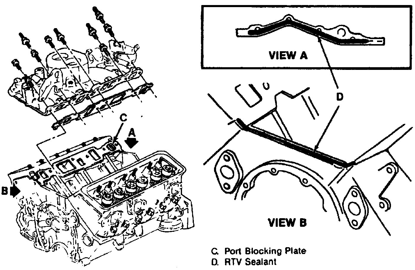 a. Remove all traces of old sealant from cylinder head, block and manifold.