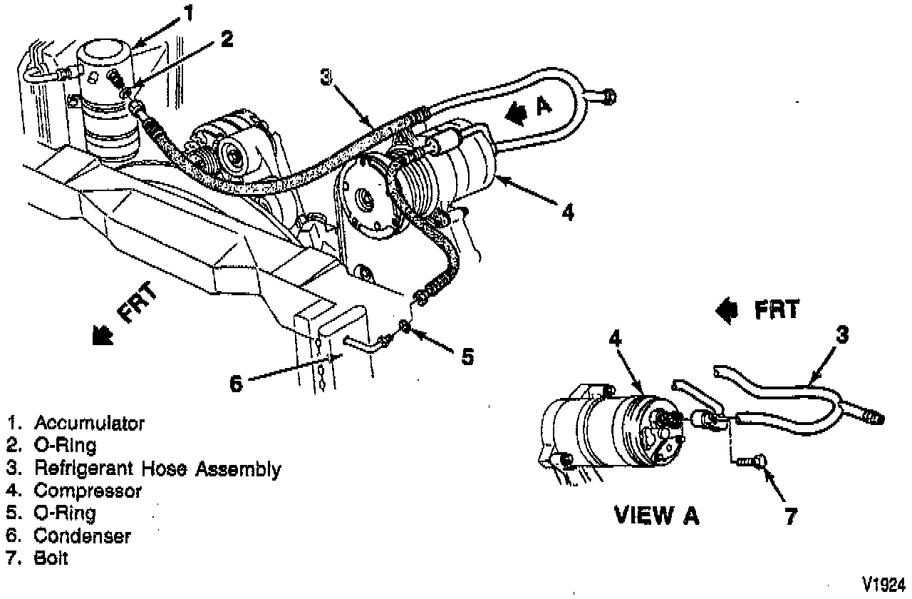 ^ Refill new compressor with same amount of oil drained from old compressor. If less than 30 ml (1 fl. oz.) was drained from old compressor add 60 ml (2 fl. oz.).