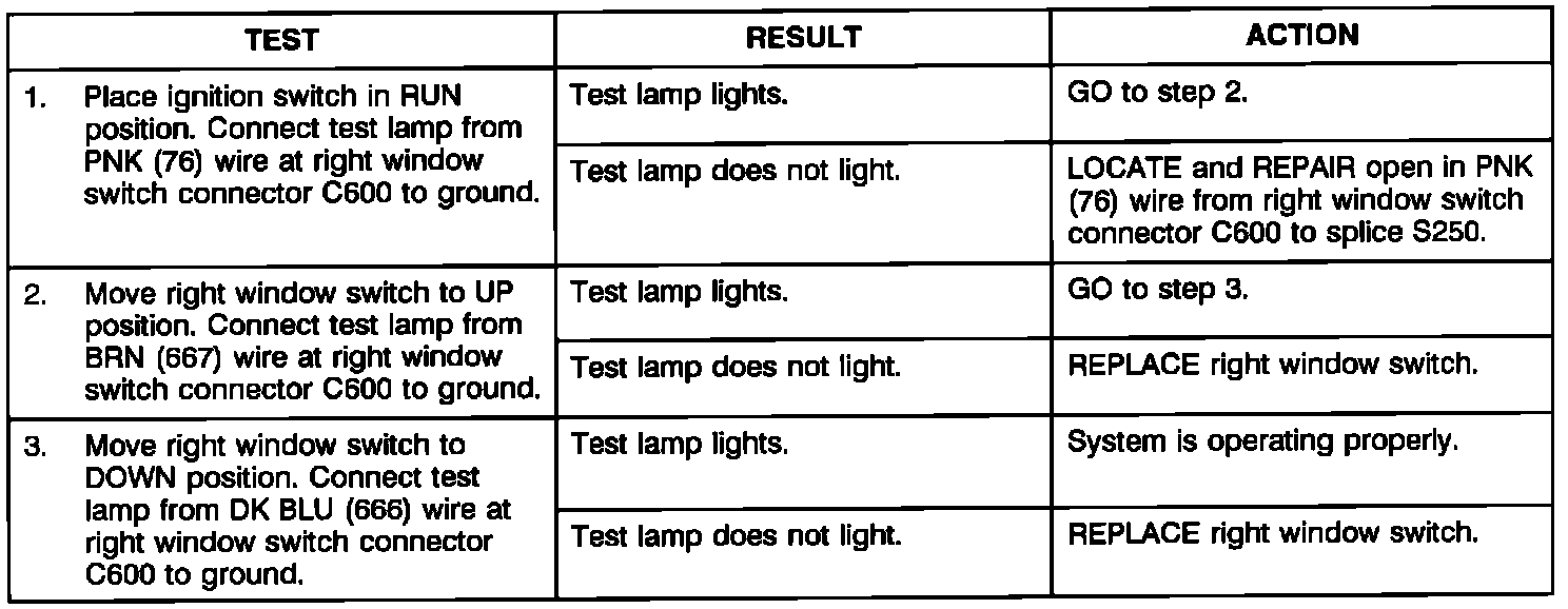 RH Power Window Only Operates From Driver's Side Window Switch: