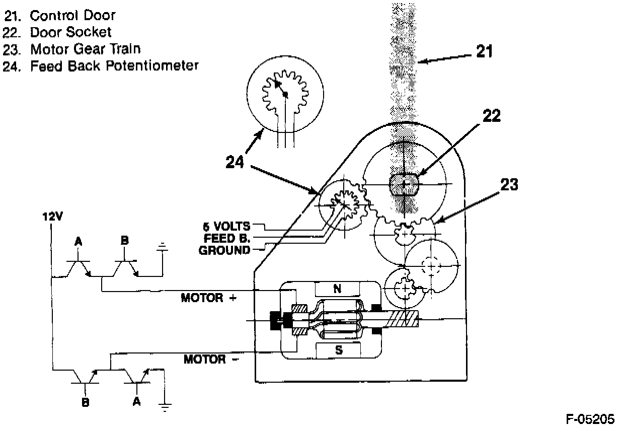 Three reduction gear motors are used to position the control doors based on input from the control panel. The motors are the permanent magnet type and use a feedback potentiometer to indicate exact door position.