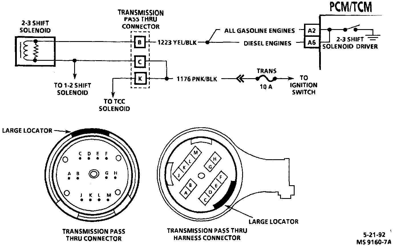 Fused ignition power is supplied to 2-3 solenoid. The PCM/TCM will engage 2-3 solenoid by grounding CKT 1223 to energize the 2-3 solenoid.