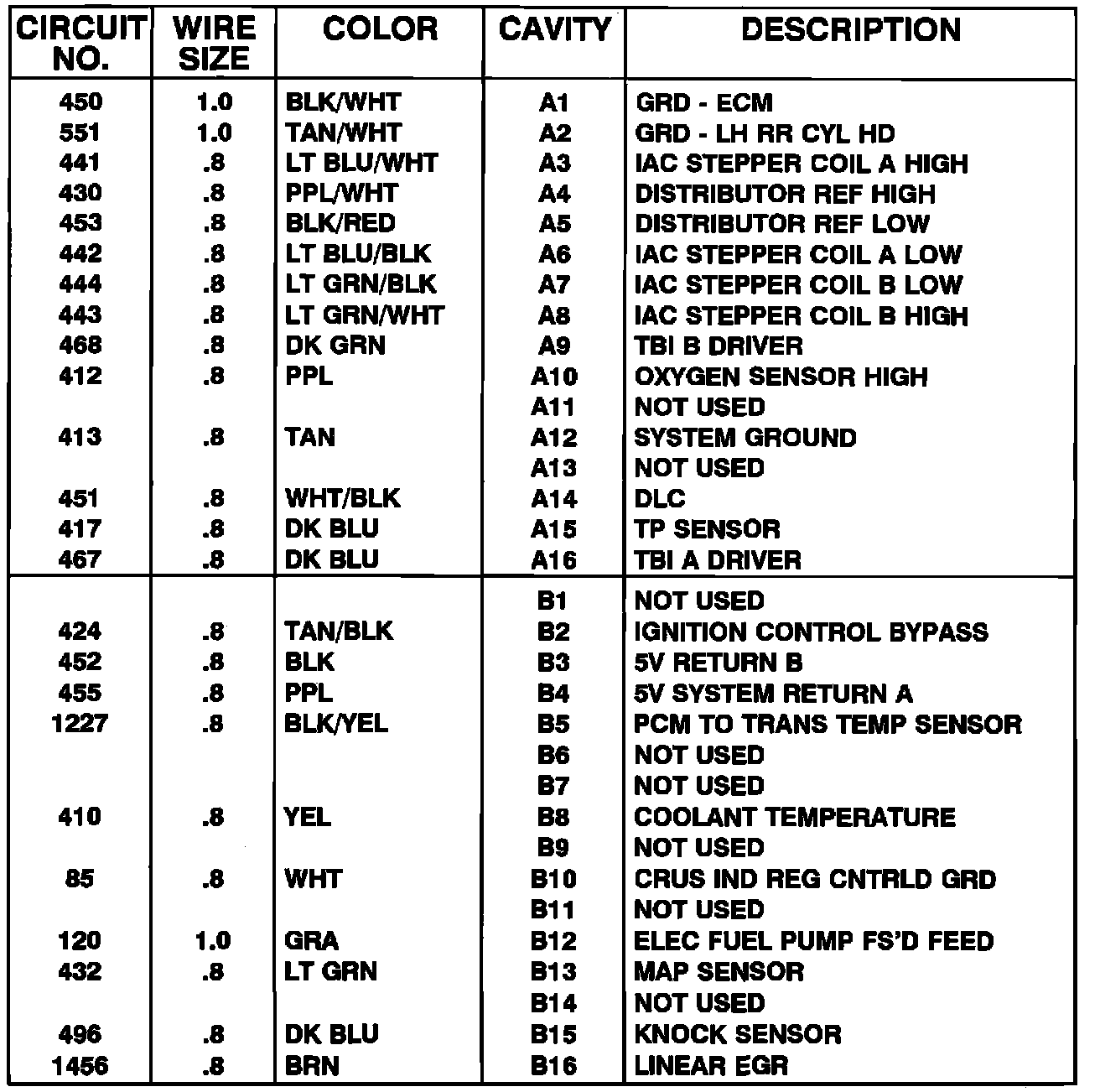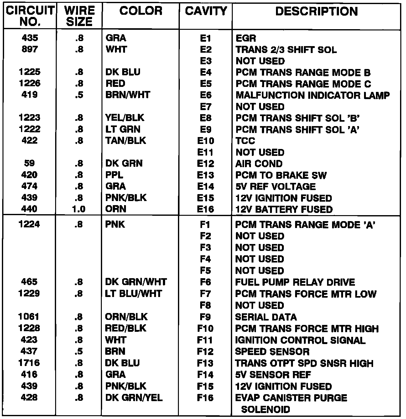 Powertrain Control Module Pinouts - Gasoline Engines W/4-SPD Automatic Overdrive Transmission: