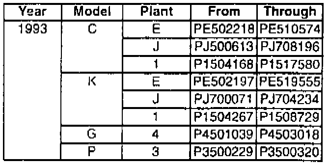 Involved are CERTAIN 1993 C/K, G, P trucks equipped with option (L19) 7.4L TBI gas engine and built within the illustrated VIN breakpoints.