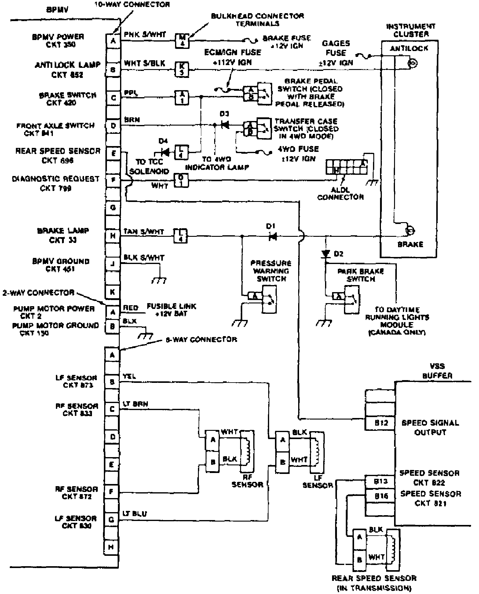 Fig. 15 Four Wheel Anti-lock Brake Wiring Circuit. 1993 C/K & G: