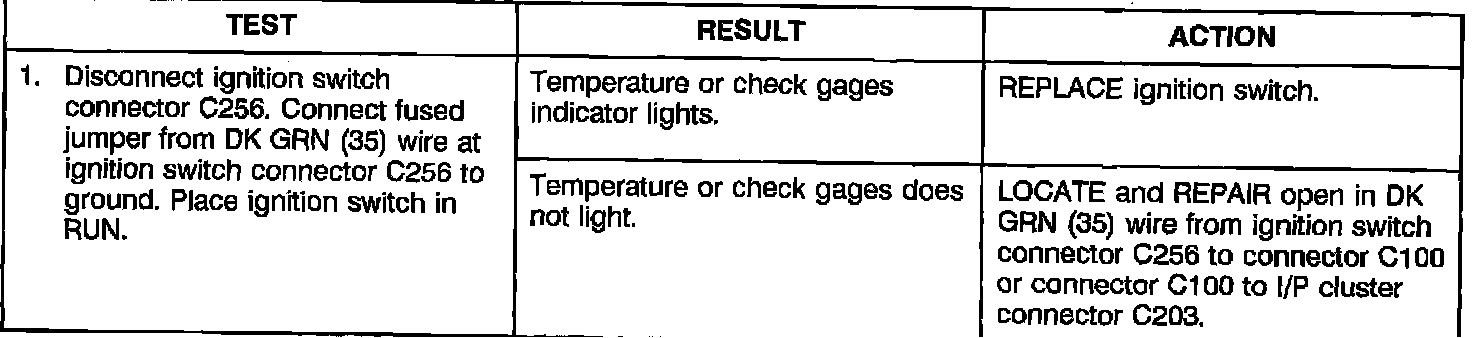 Check Gages Or Temperature Indicator Does Not Light With Ignition Switch In Bulb Test Or Start: