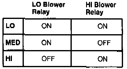 In the Medium speed position, Terminal 1650 of the Heater and A/C Controller is not grounded which deenergizes the High Blower Relay. In the de-energized state, the contacts of the Relay shunt one of the Blower Resistors allowing the Blower Motor to operate at increased speed.