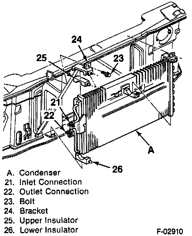 - Bend the left grille support outboard to gain clearance for the condenser removal.