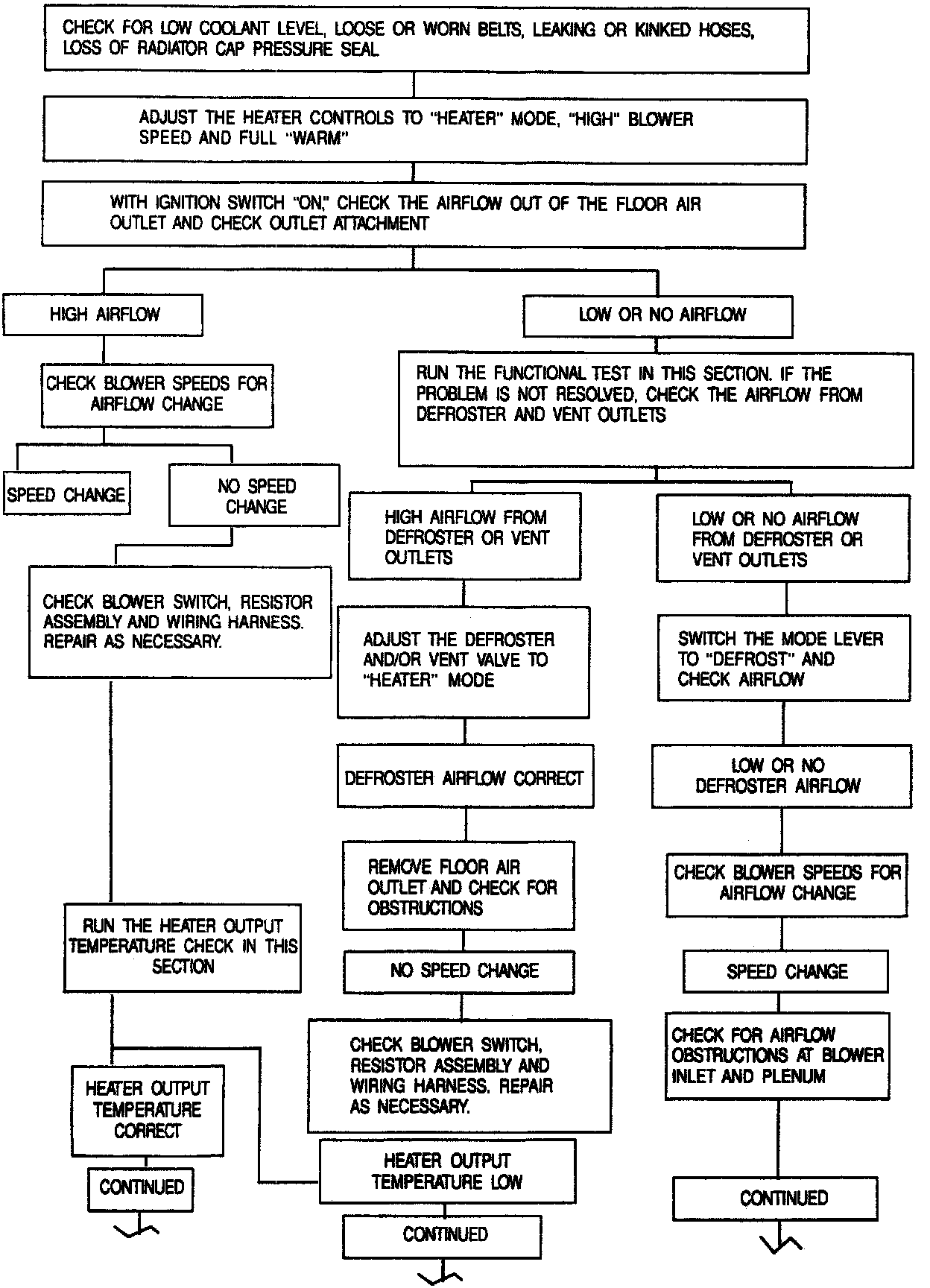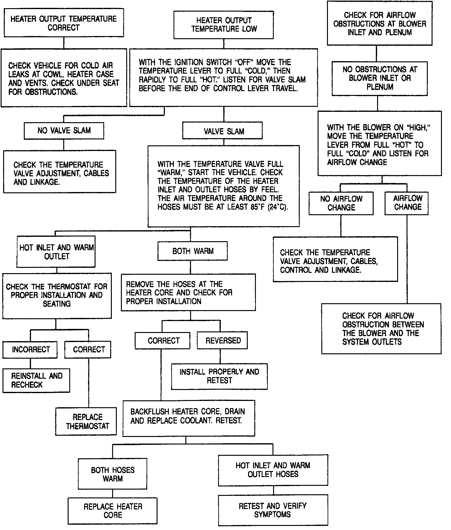 The most likely causes of insufficient heating outside the heater system include a low coolant level, a faulty thermostat, a partially or fully clogged heater core or hose, an obstruction to air circulation or an air leak past a faulty seal into the passenger compartment. For an organized diagnosis procedure.