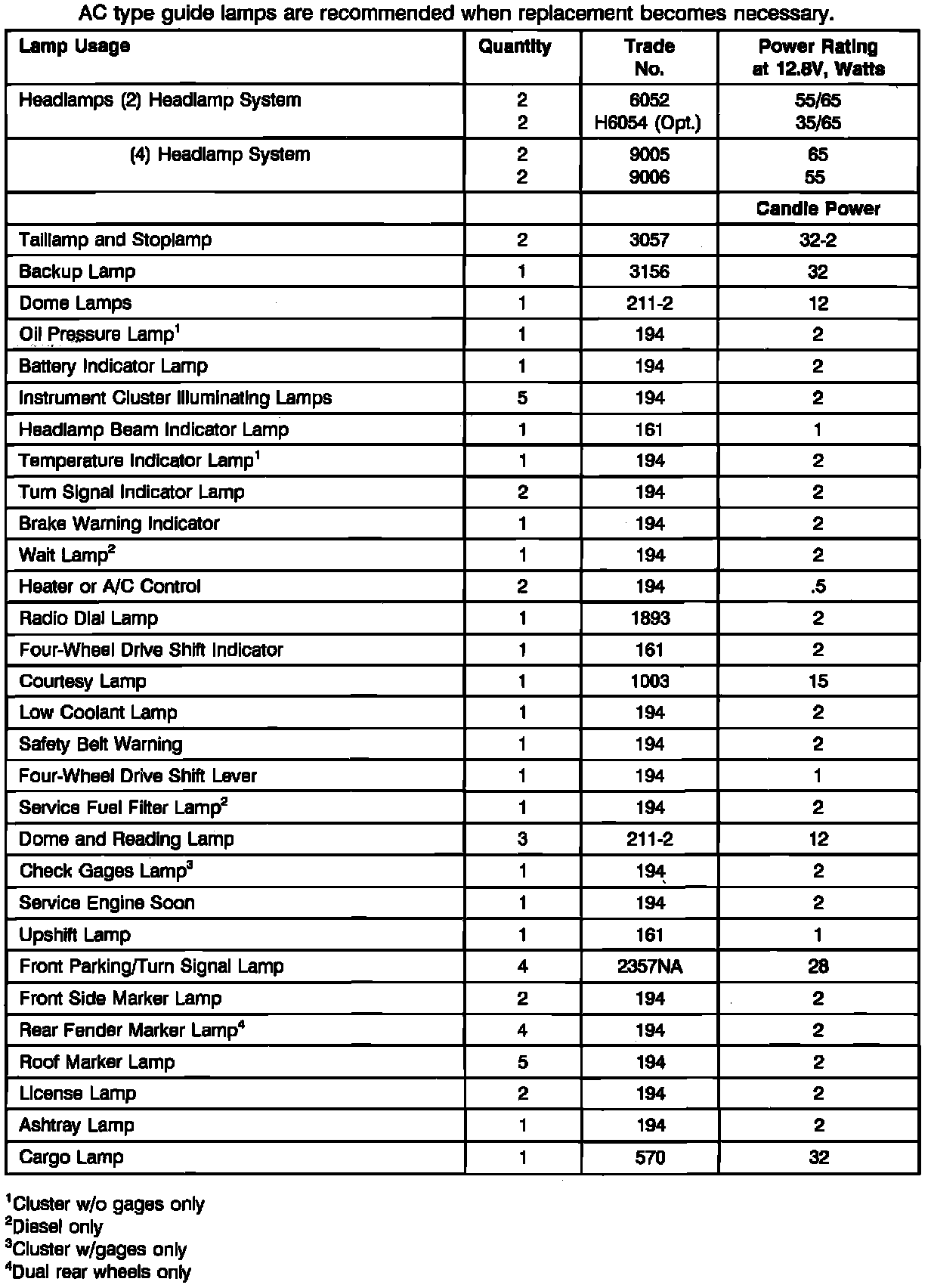Lamp Bulb Data:
