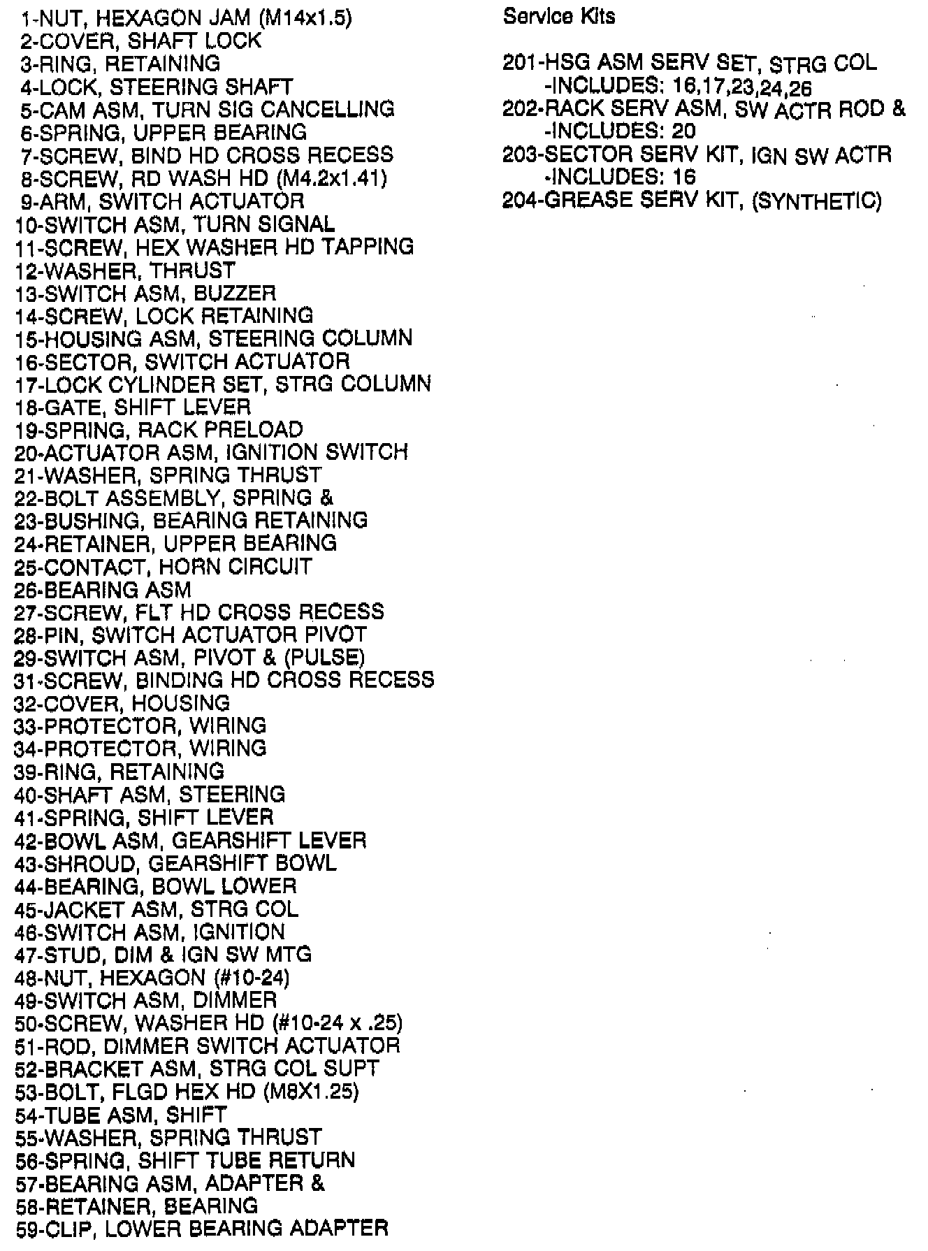 Standard Steering Column - Legend: