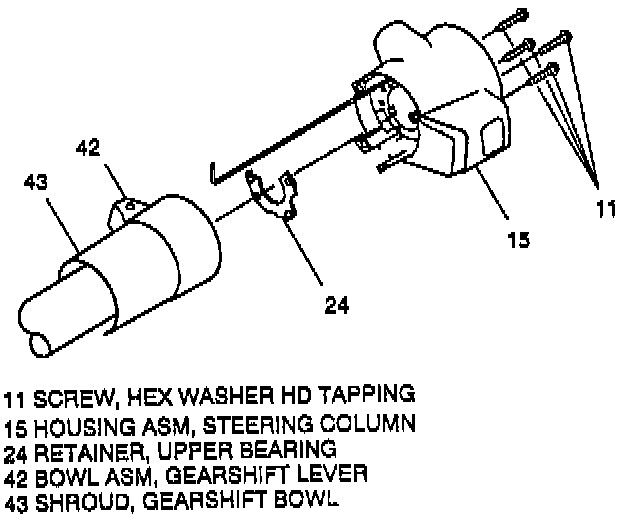 16. Steering column housing assembly (15) from gearshift lever bowl assembly (42) and gearshift bowl shroud (43).