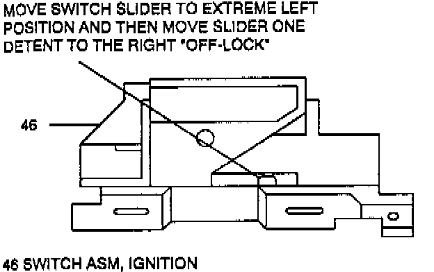 NOTICE: Install ignition switch (46) to jacket (45) with switch in "OFF-LOCK" position. (See Figure 13) New ignition switch will be pinned in "OFF-LOCK" position. Remove plastic pin after switch is assembled to column. Failure to do so may cause switch damage.