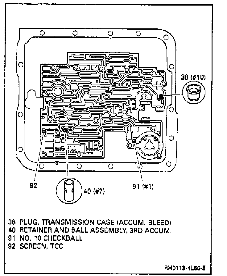 15. Note number of check balls located under valve body and number of check balls located in case. Remove and retain check balls.