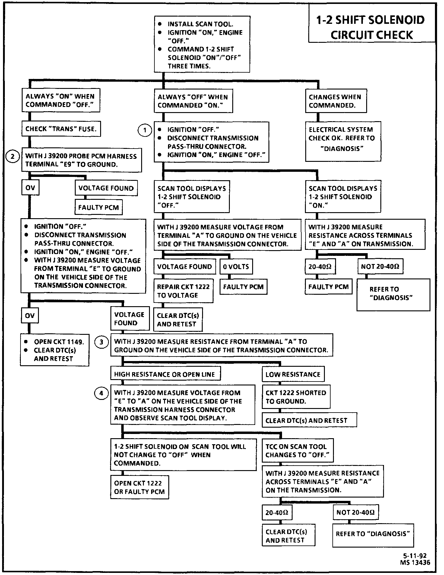 1. This test checks 1-2 shift solenoid and the internal transmission wiring harness for shorts.