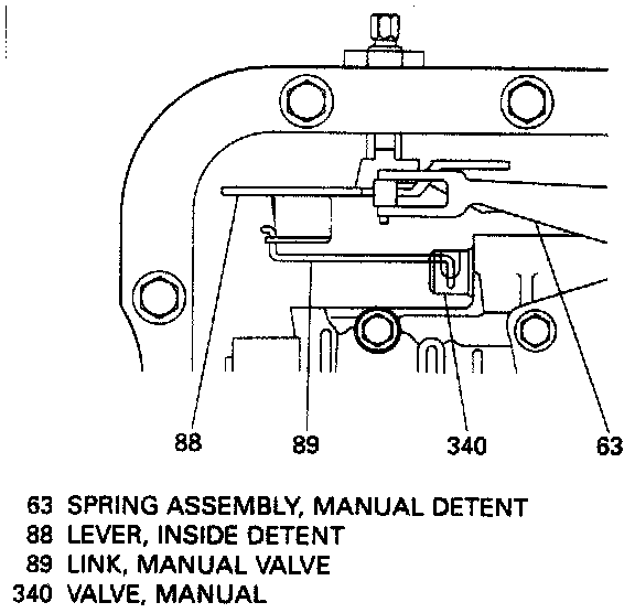 ^ Connect the manual valve link (89 in Fig. 3) to the inside detent lever (88 in Fig. 4).