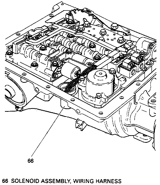 2. Wiring harness (66 in Fig. 2), manual spring assembly (63 in Fig. 2), pressure switch assembly (69 in Fig. 2) and all remaining valve body bolts.