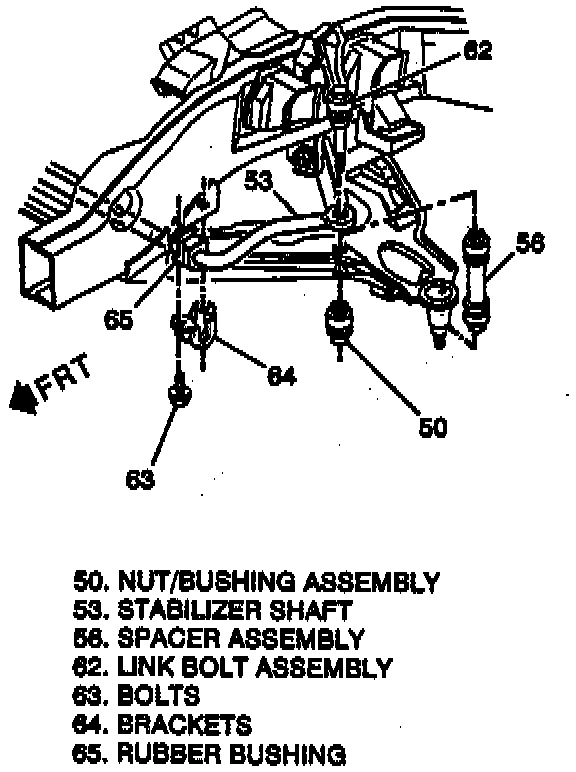 2. Right stabilizer link nut assembly (50), spacer (56), and link bolt assembly (62).