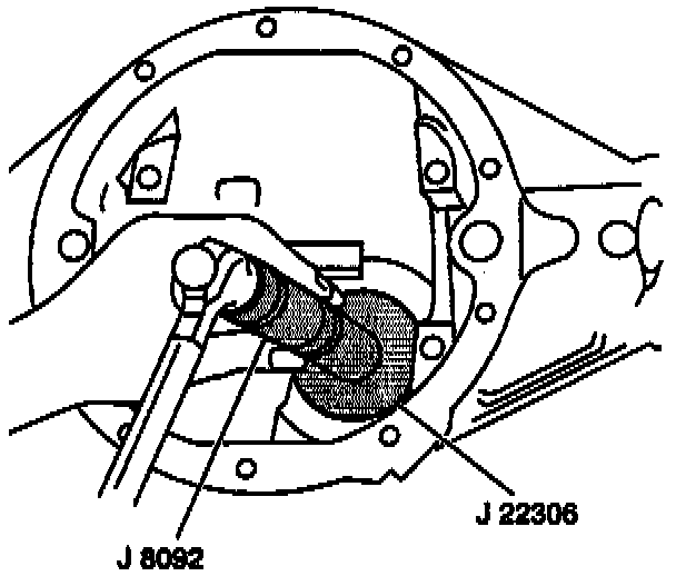 2. Rear pinion bearing cup (13) using J 22306 and J 8092.