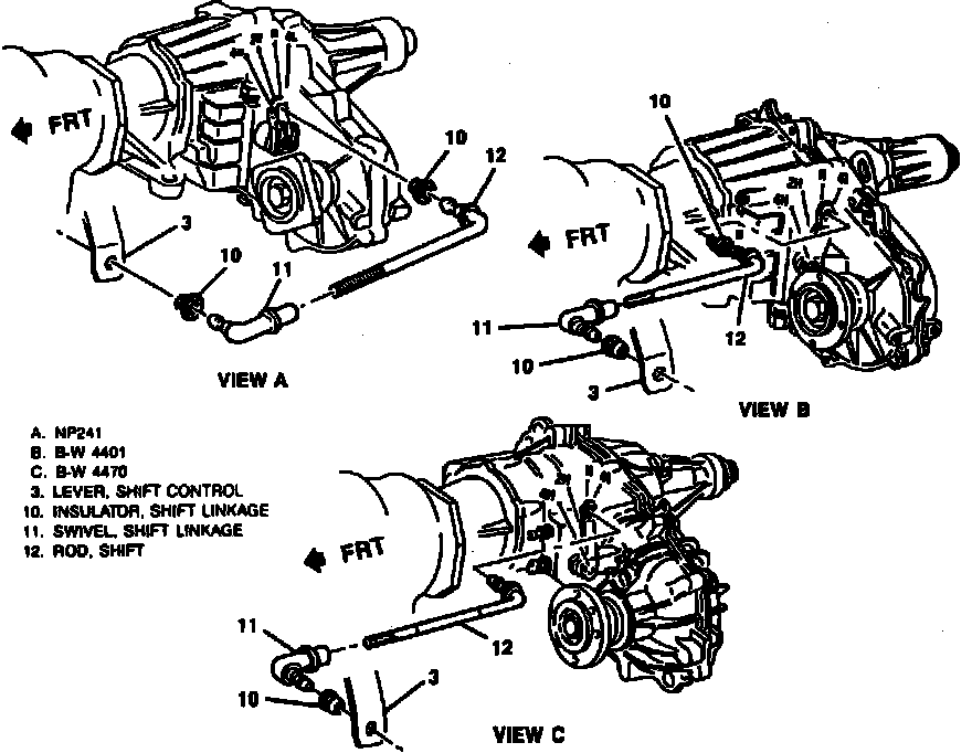 3. Shift transfer case into 4 HI position, lever should be in full forward detent, Fig. 1.