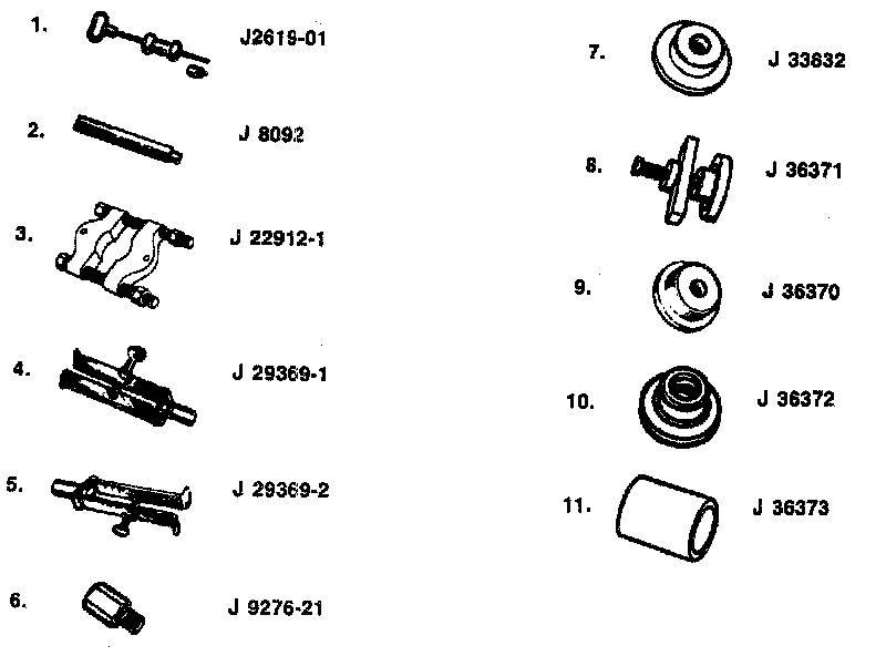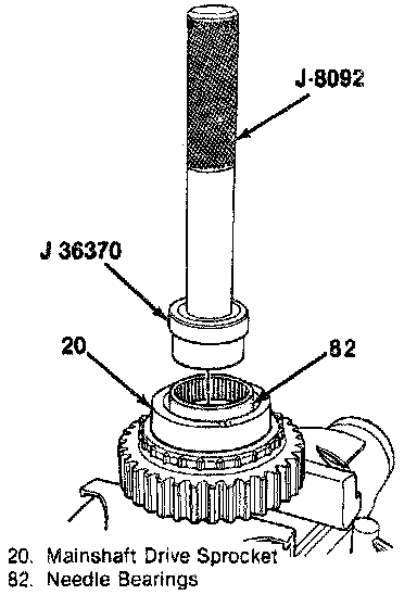 1. Needle bearings (82) into the drive sprocket (20) using J 36370 end J 8092.