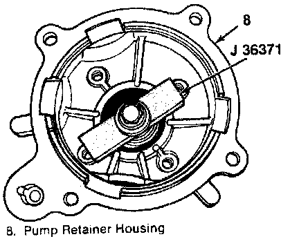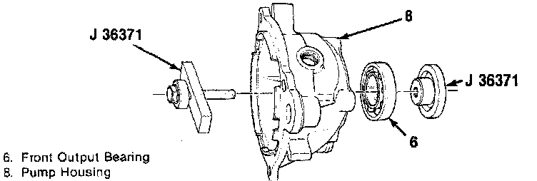 5. Bearing (6) into pump retainer housing (8) using J 36371.