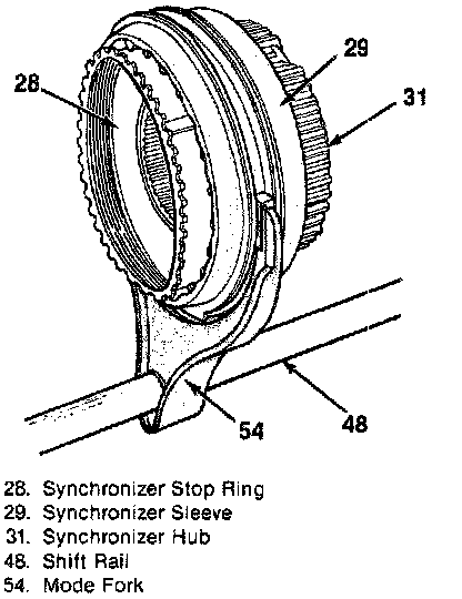 3. Main drive synchronizer stop ring (28) to the synchronizer sleeve (29).