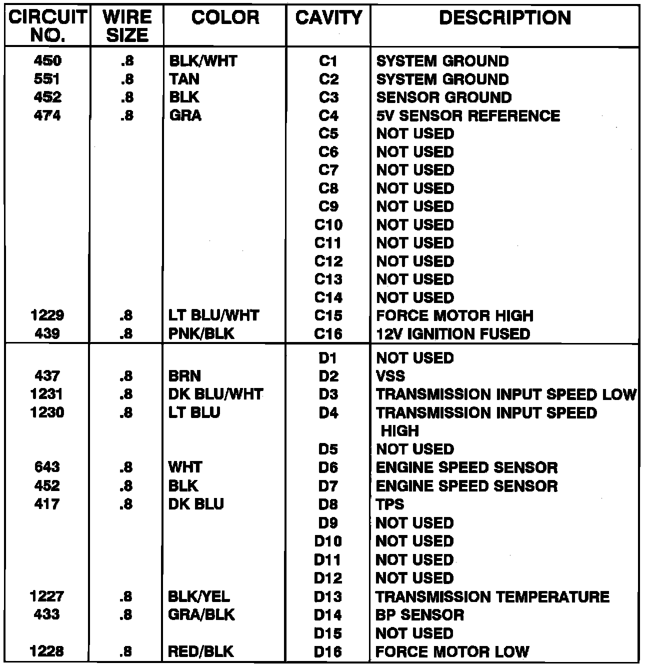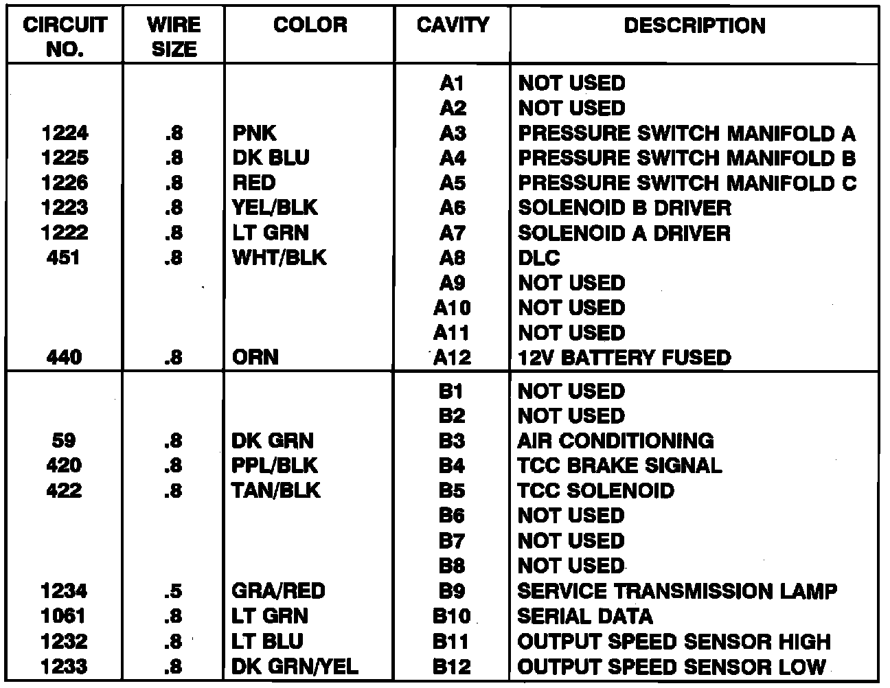 Transmission Control Module Pinouts - Diesel Engines W/HD 4-SPD Automatic Overdrive Transmission: