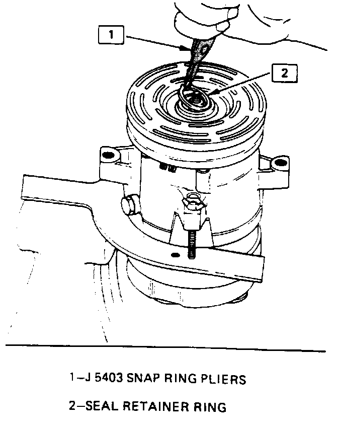 4. Remove the shaft seal retainer ring, using snap ring pliers J 5403.