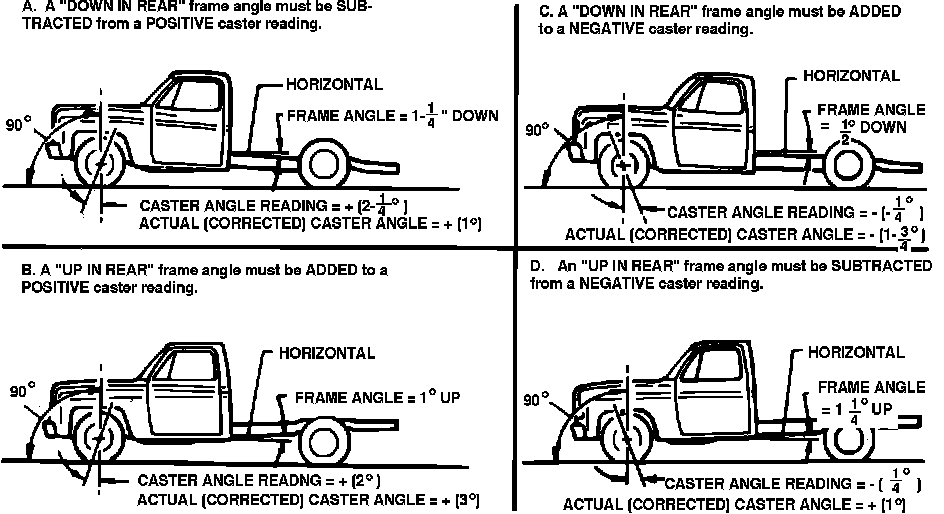 b. An up in rear frame angle must be added to a positive caster reading.