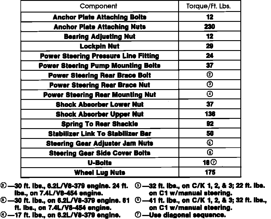 Tightening Specifications: