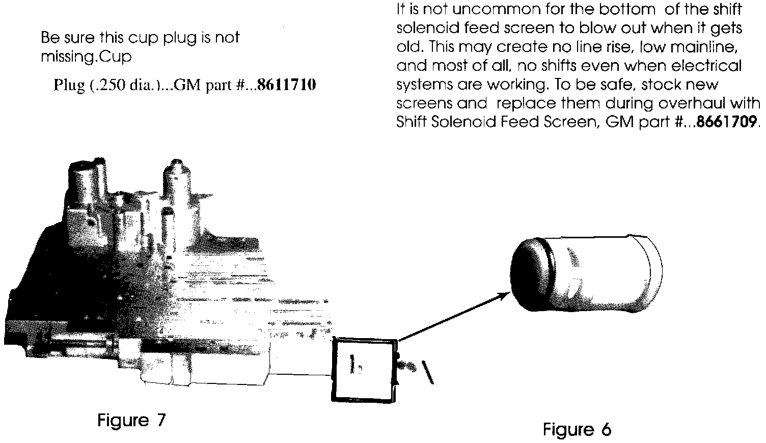 It is also necessary to verify that the force motor is not sticking (Figure 5), and that the valve body is checked for a broken screen (Figure 5). A missing cup plug in the accumulator housing (Figure 5) can also create no line rise. Be sure to check all of these areas whenever you are looking for the cause of any high/low pressure complaints. Figure 1 - Case Identification