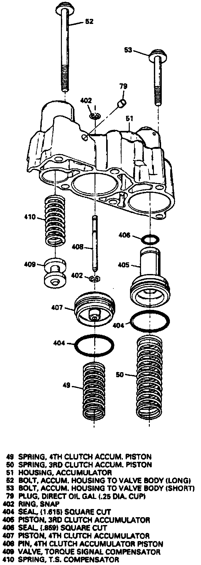2. Remove snap ring from outside housing, pin, snap ring, piston and spring.