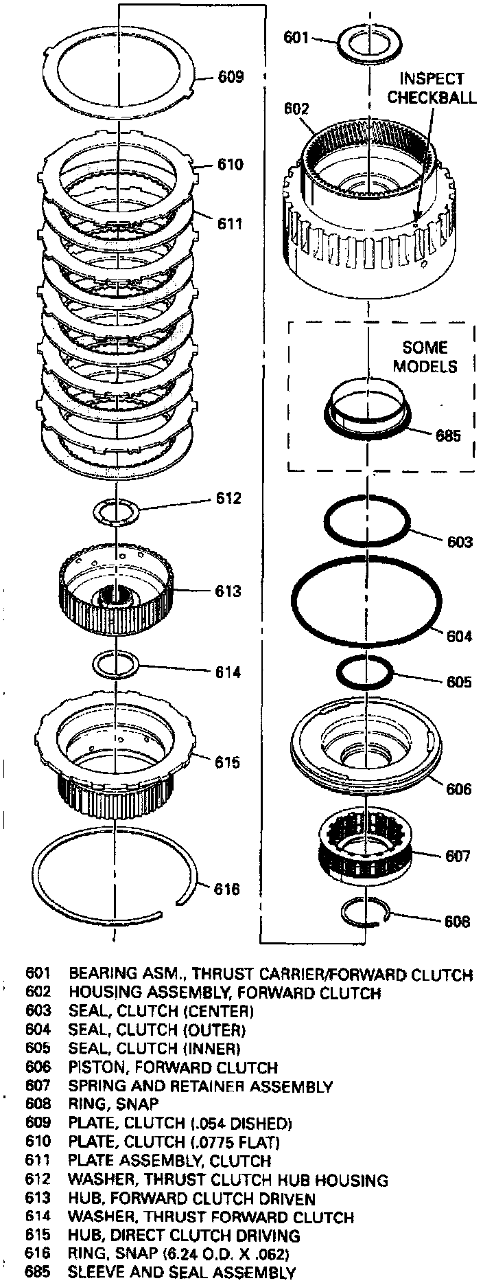 1. Remove snap ring and direct clutch driving hub from forward clutch housing, per figure.