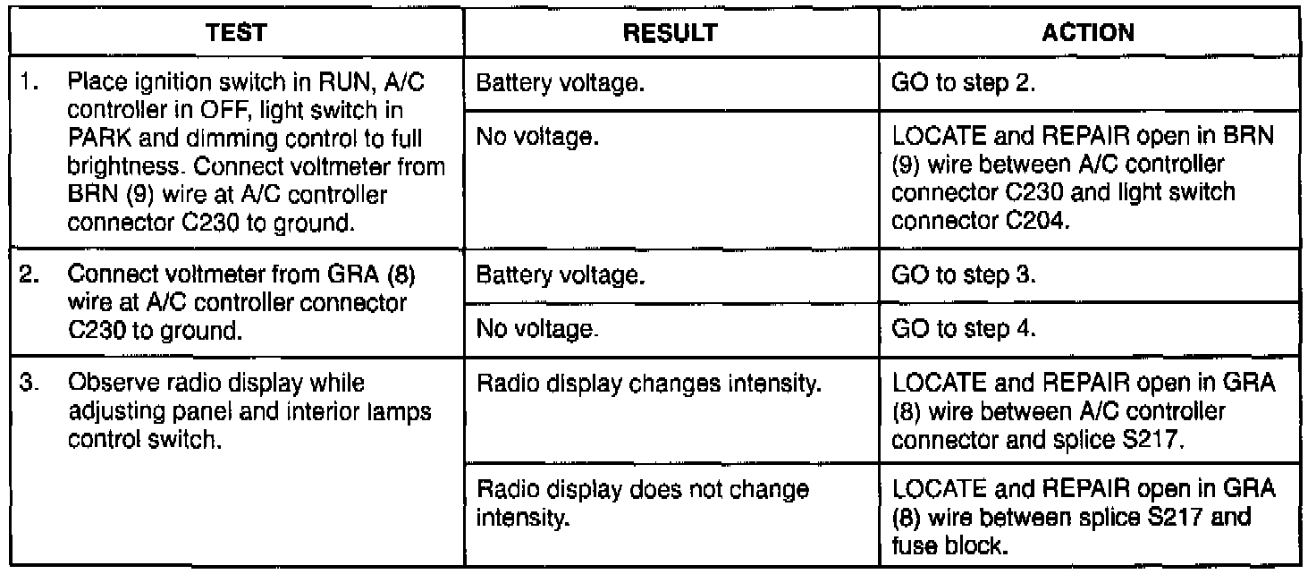 Test D Display Does Not Dim Properly (continued):