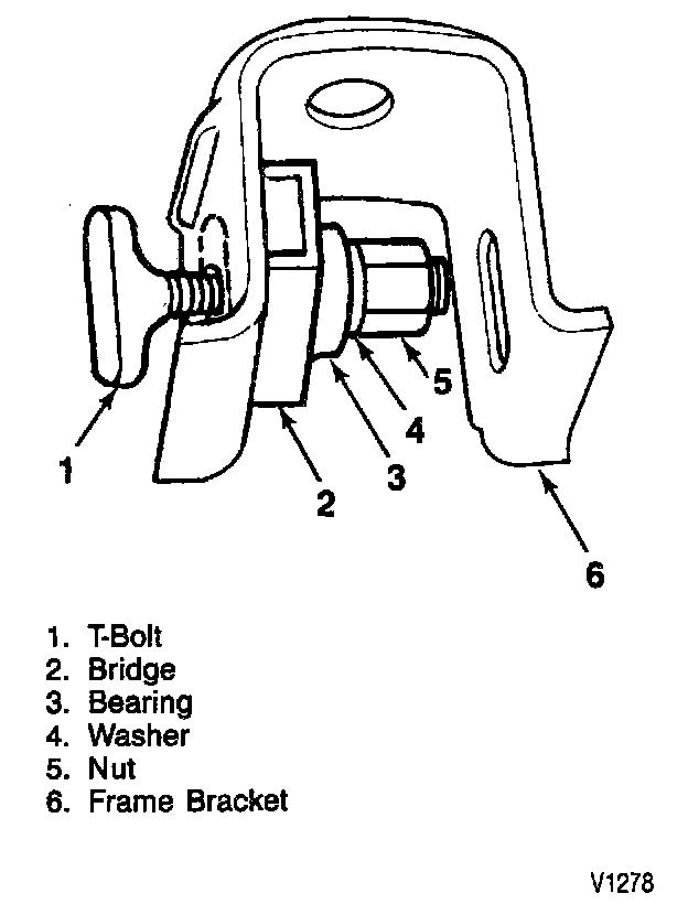 ^ Install bridge onto the T-bolt. The forward bracket requires the bridge to be installed between the legs of the bracket due to access problems.