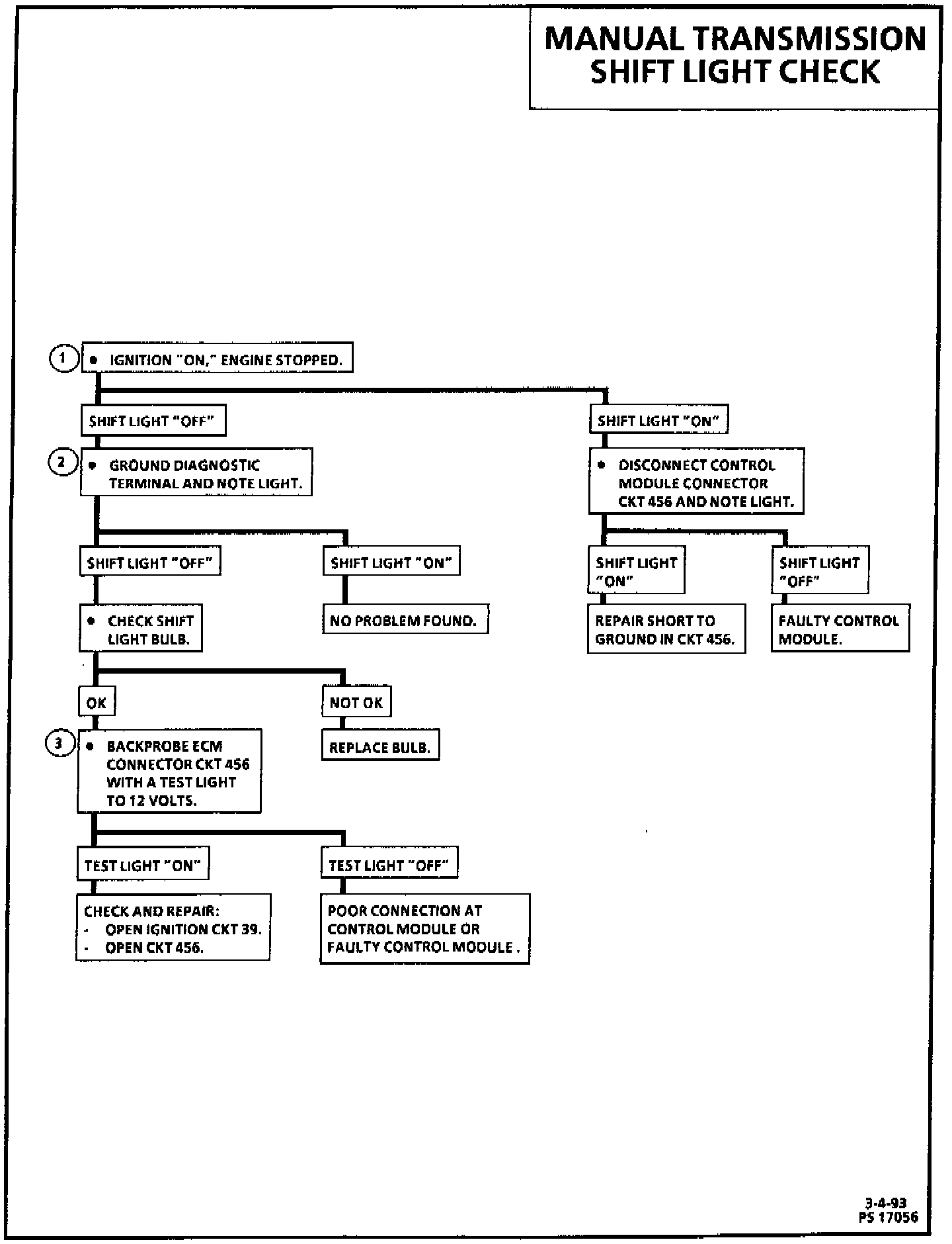 1. This should not turn "ON" the shift light. If the light is "ON," there is a short to ground in CKT 456 wiring, or a fault in the control module.